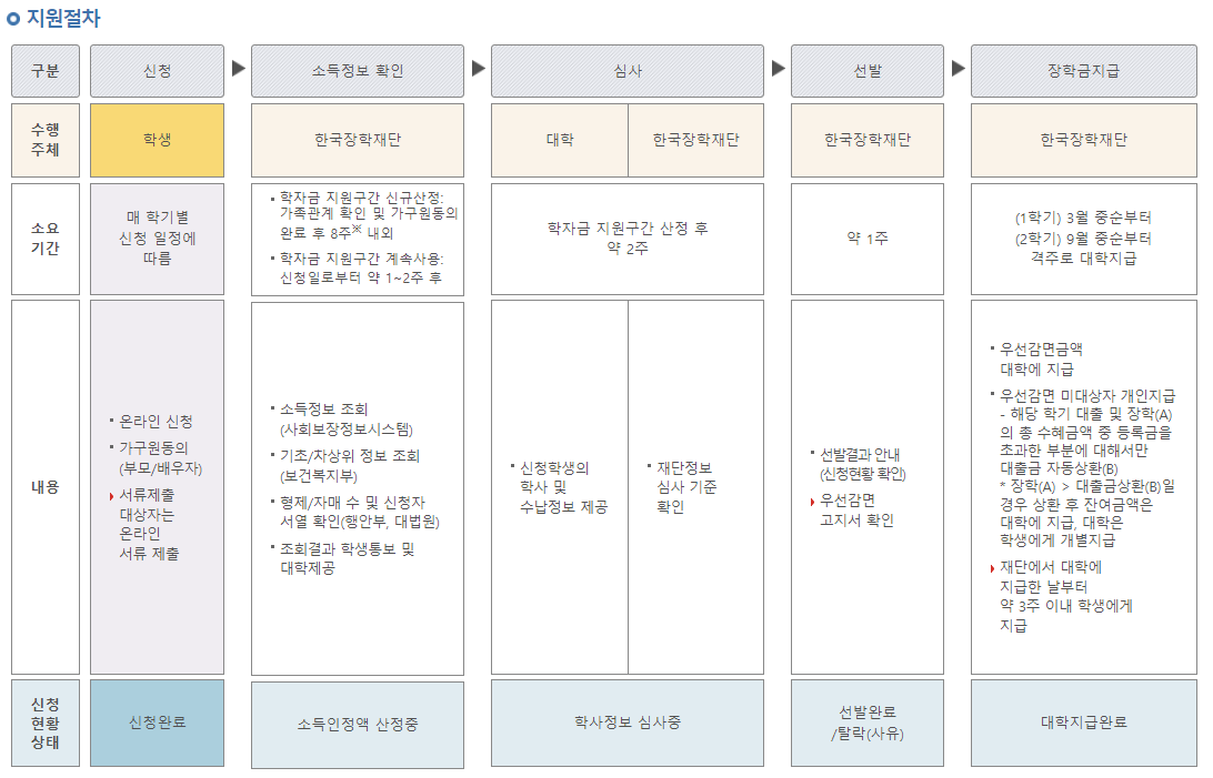 국가장학금 지원절차는 다음과 같습니다.
