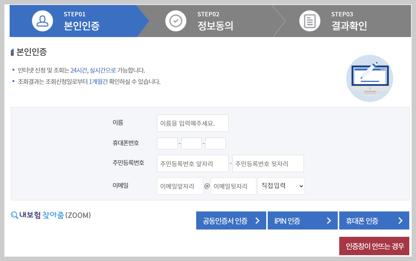 2) 내 보험 찾아줌을 클릭하면 이런 화면이 뜹니다.