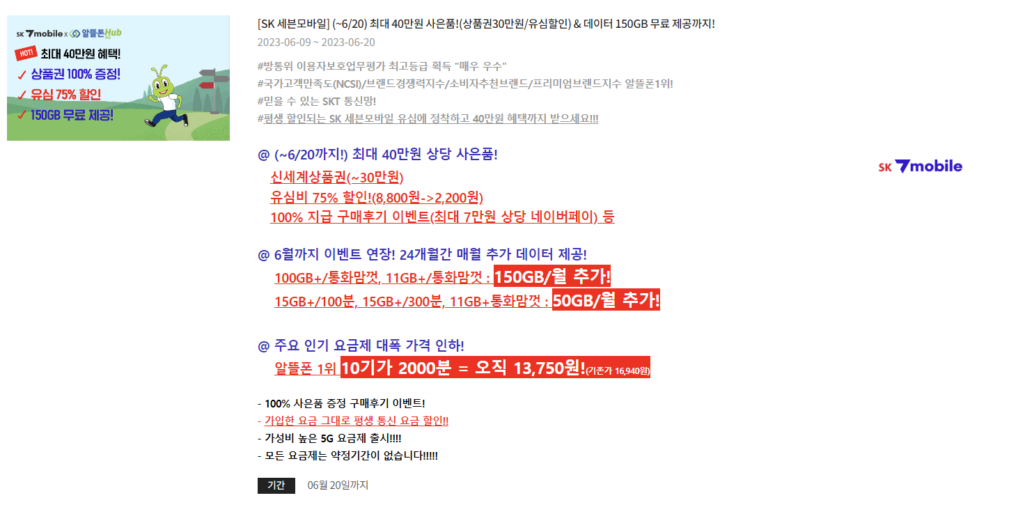 1. 알뜰폰 요금제의 경우 프로모션 기간이 끝나면 요금제가 달라집니다 (하지만 약정기간이 없기 때문에 프로모션 기간 동안만 저렴한 요금제를 사용하고 프로모션 기간이 끝나면 또 다른 저렴한 요금제로 갈아탈 수 있습니다)