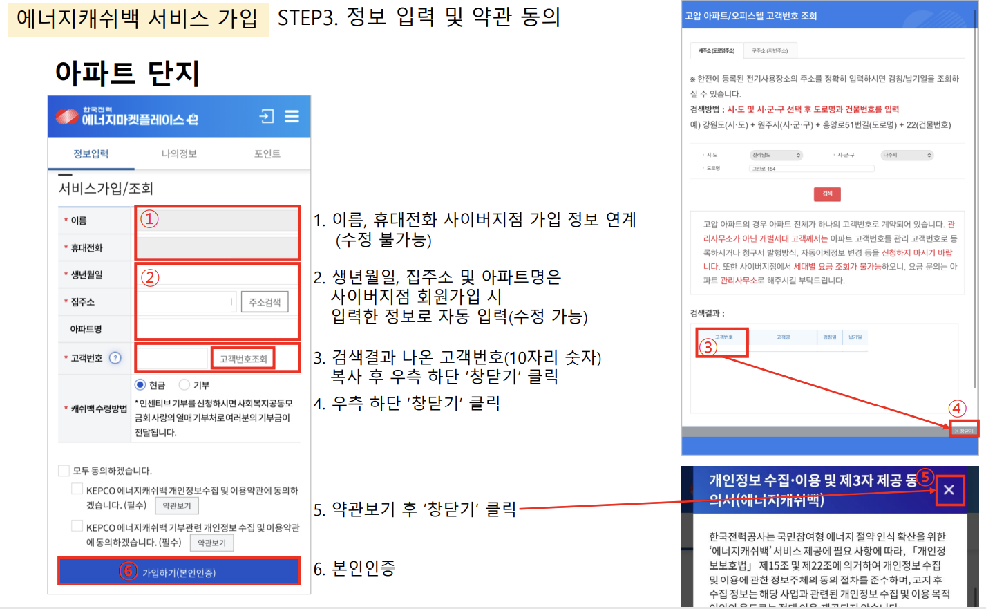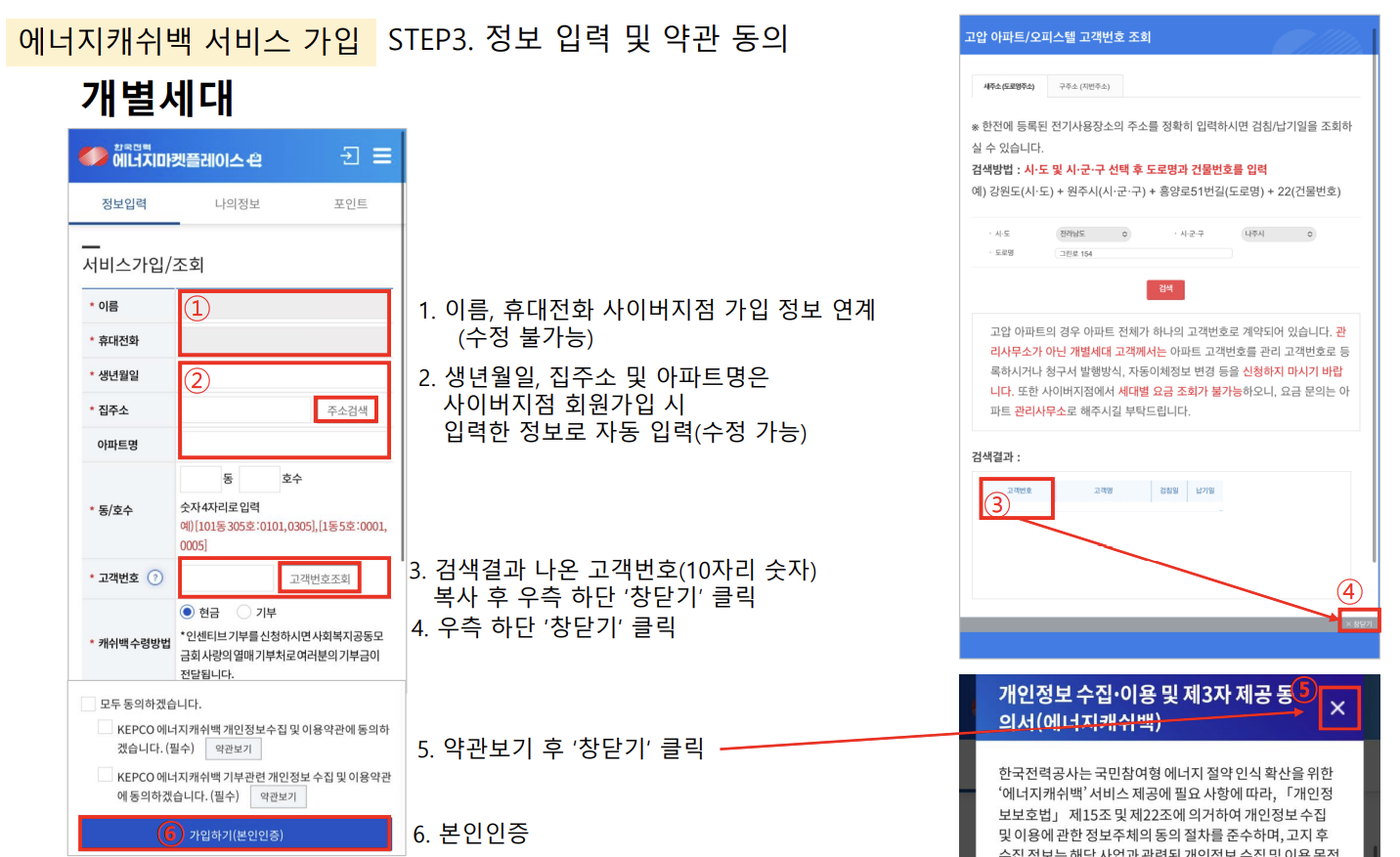 5. 아파트 단지, 개별세대 선택하여 개인정보를 기재합니다.