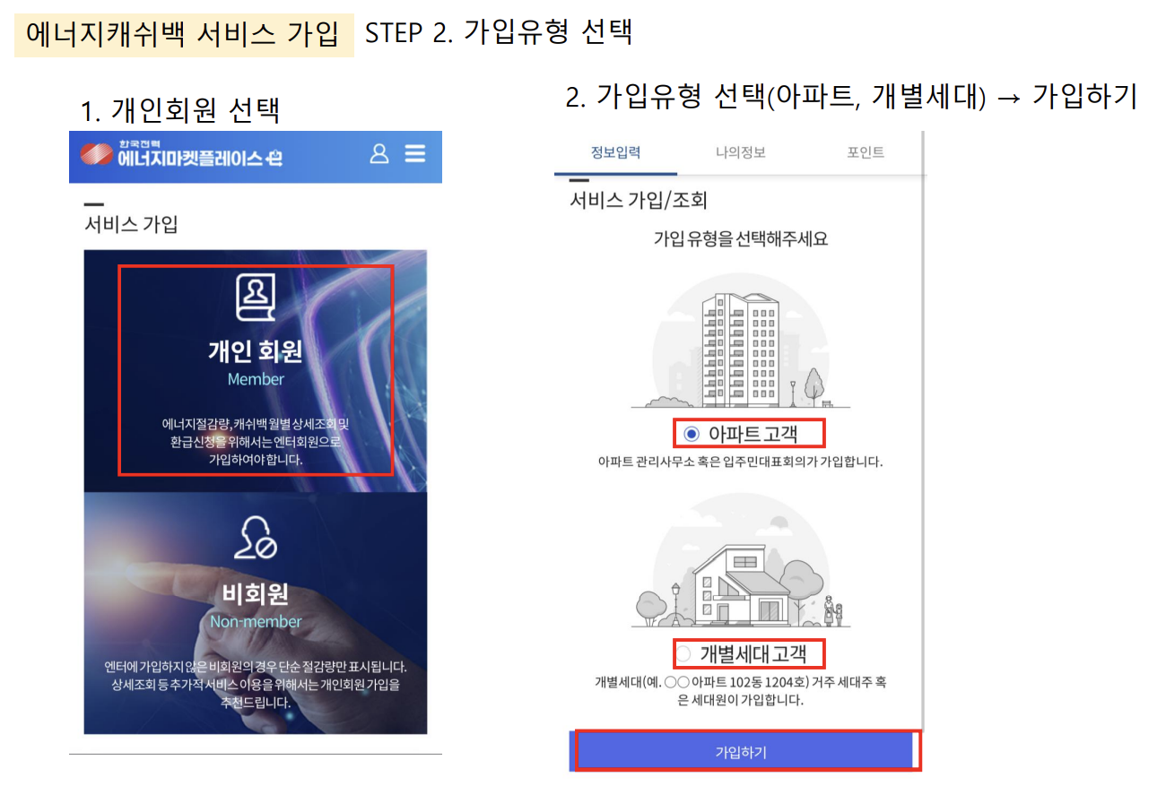 3. 가입유형을 선택합니다(개인회원인지 비회원인지)