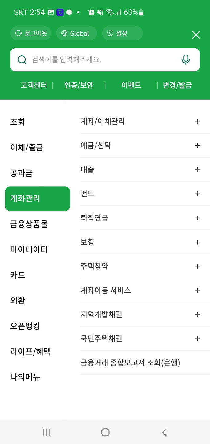 2) 해당 은행에 가입 후 로그인하여 계좌관리를 클릭합니다.