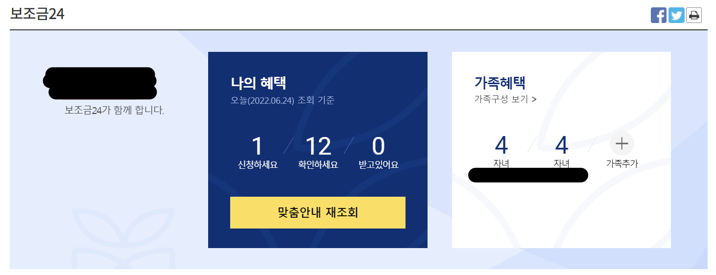 ☞ 로그인을 하면 이렇게 나와 아이가 있다면 자녀의 혜택까지 볼 수 있어요