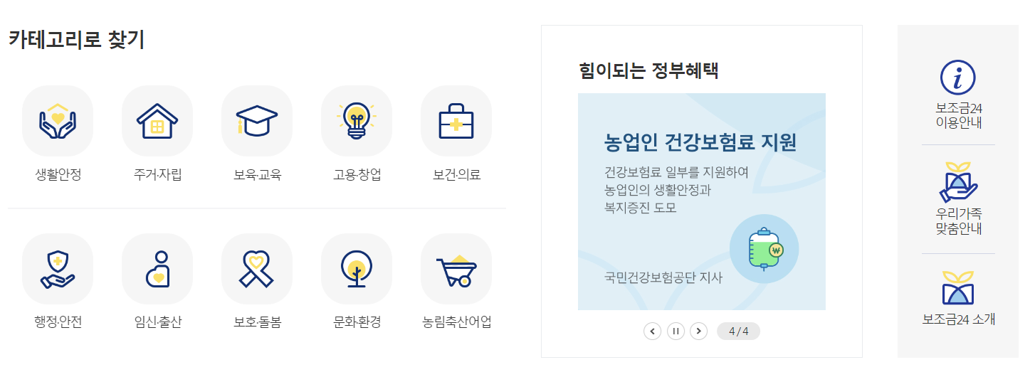 ☞ 간편 찾기와 카테고리로도 내가 지원받을 수 있는 혜택들을 알아볼 수 있답니다.