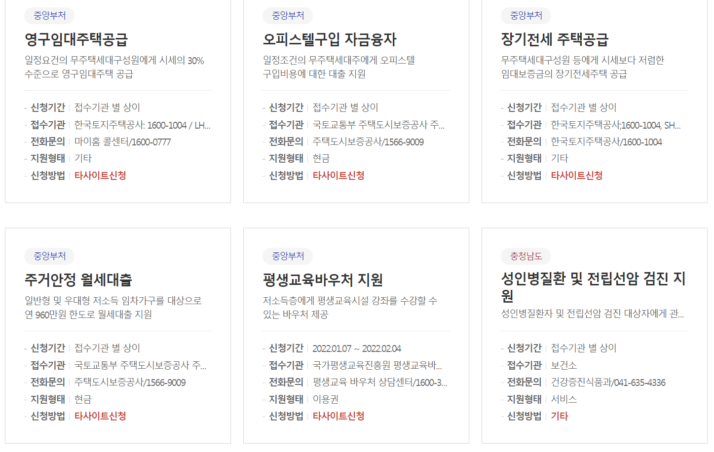 그럼 아래처럼 지원받을 수 있는 대상과 지원 내용들이 나오게 됩니다.