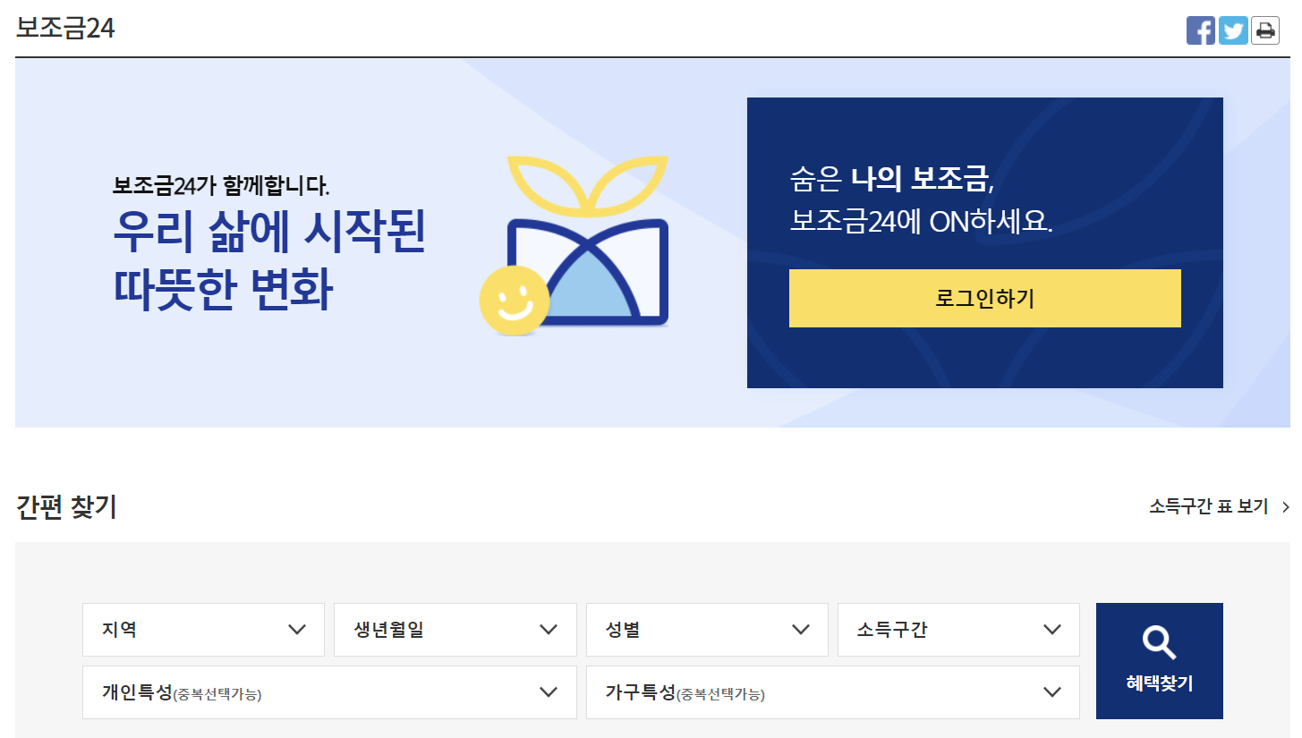 2) 보조금 24를 클릭합니다