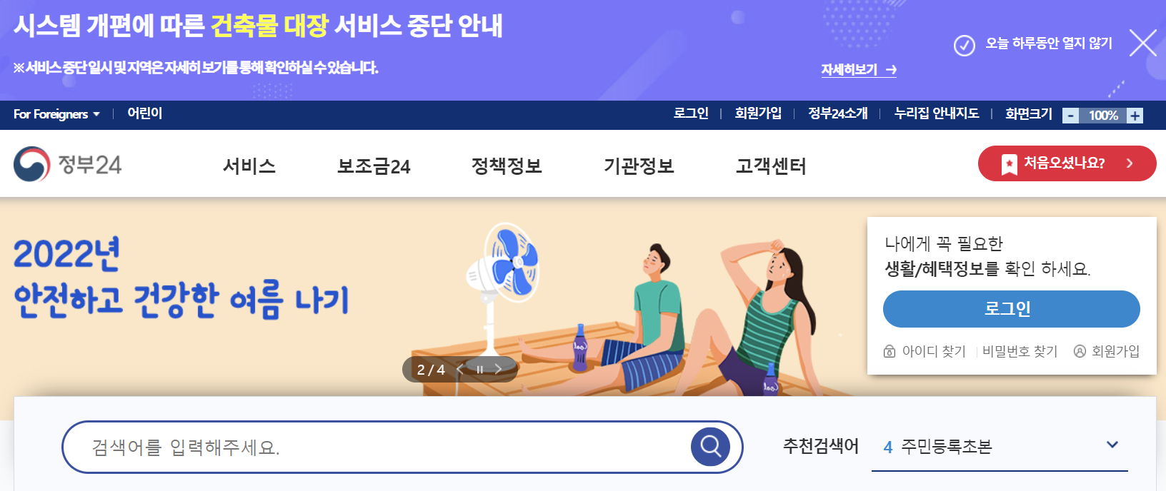 1) 정부 24 홈페이지에 접속하여 로그인합니다.