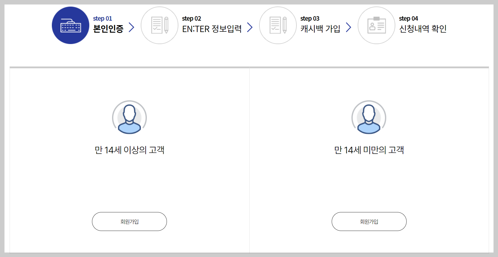 ▶만 14세이상의 고객에 체크합니다.