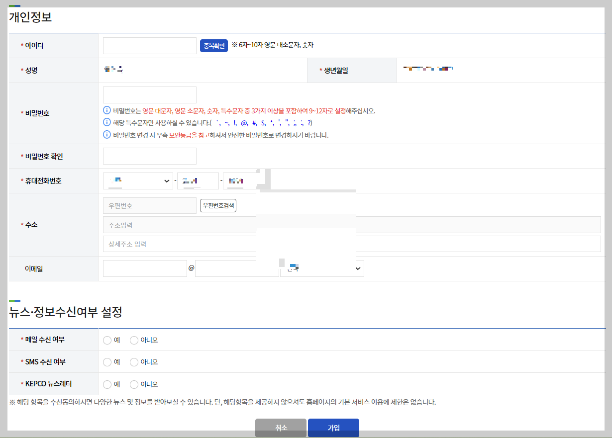 ▶ 아이디,비밀번호, 집주소를 입력하고 가입하기를 누릅니다.
