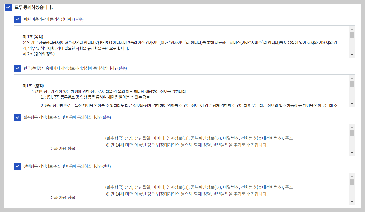 ▶ 모두 동의에 체크합니다.