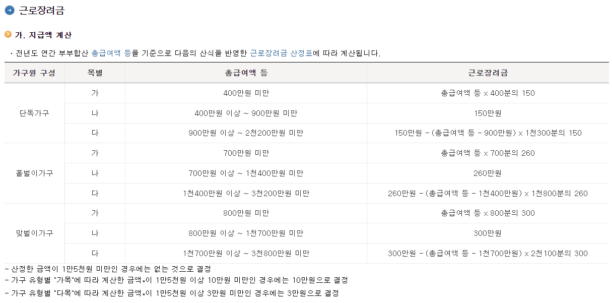 ▣ 근로장려금 계산방법