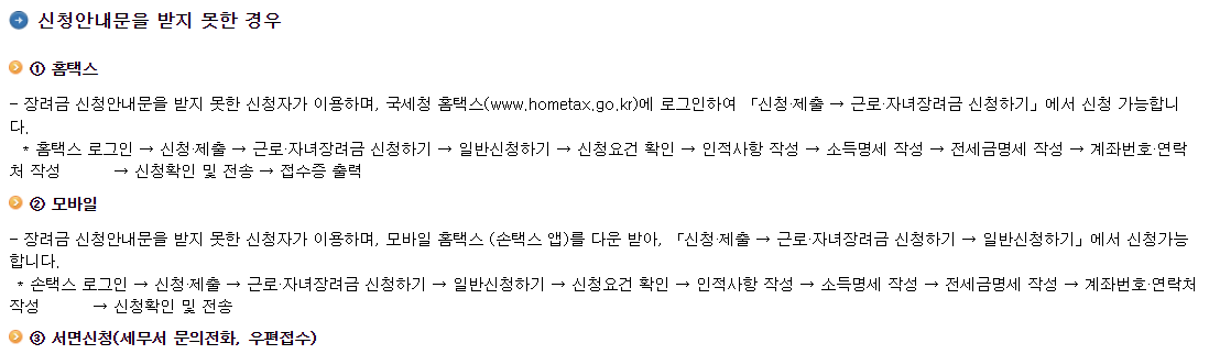 - 2022년 귀속 기한 후 신청(근로, 자녀장려금)은 2023년 6우러 1일 ~ 11월 30일까지 신청
