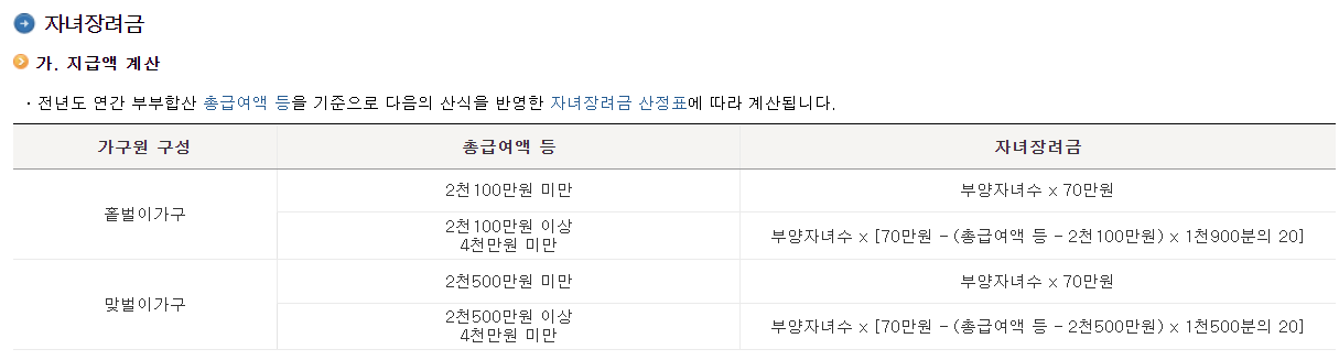 ▣ 자녀장려금 계산방법